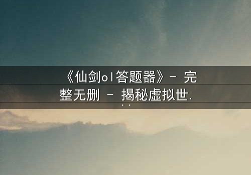 在《仙剑ol答题器》的虚构世界中,主角李明是一名普通的游戏玩家,痴迷于仙剑ol这款热门在线角色扮演游戏。一天,他偶然获得了一个神秘的答题器,号称能解答游戏中的所有难题。起初,李明以为这只是个普通工具,用来提升游戏效率,但很快他发现,这个答题器不仅能预测游戏事件,还能预知现实生活中的关键转折点。随着剧情展开,李明在虚拟与现实的边界上越陷越深,答题器的预言一次次应验,让他陷入道德与生存的漩涡。